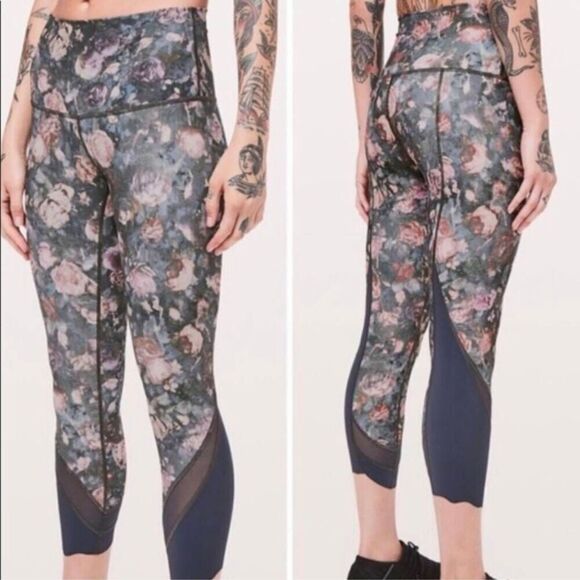 Lululemon Wunder Under Crop II Leggings Special Edition Scallop Frosted Rose Melanite Sz 6