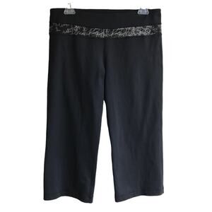 Lululemon Size Ten Groove Wunder Under Cropped Leggings Capri Pants Black Reflective Manifesto Printed Waistband Reversible