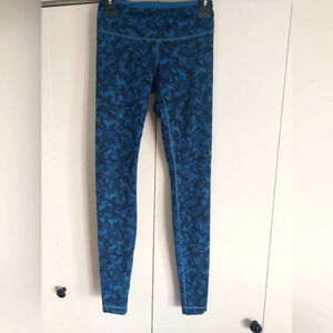 Lululemon "Wunder Under" Full length printed leggings blue sz 4 Yoga Athleisure