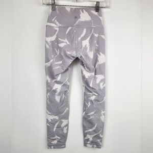 Lululemon Wunder Under HR Tight Mid Rise Gray Pattern Size 4. 24 inch inseam- cropped. Measurements are in the photos. Pre owned.