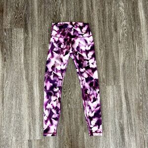 Vibrant Lululemon leggings in eye-catching, beautiful pink and purple floral tie-dye pattern adds a bold pop to any activewear or street-style look