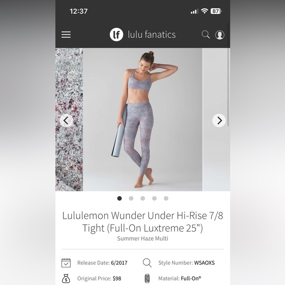 Excellent condition. Lululemon Wunder Under High-Rise 7/8 Tight (Full On Luxtreme 25”) Summer Haze Multi