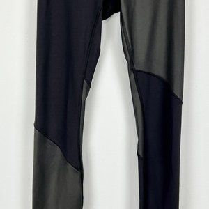 Versatile high-rise tights finished with lustrous panels that mirror faux leather or pleather. Designed for on the move… office, travel, commute.