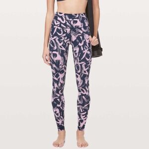 Lululemon Wunder Under High Rise Tight 28" 2 Graffiti Pop Antoinette True Navy