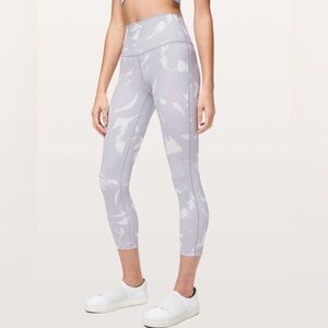 Preloved, excellent condition Lululemon Wunder Under High-Rise Tight 25" *Full-On Luxtreme in Flower Pop White Silver Lilac. Size 10! Super pretty!