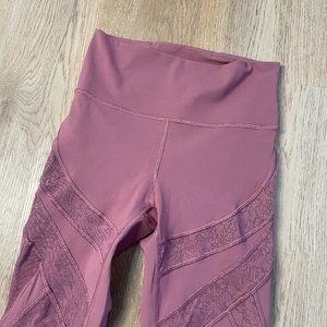 "Ornate panels of flocked Mesh fabric push these classic yoga tights to a new level.