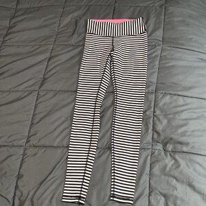 Lululemon Wunder Under Leggings in Narrow Bold Stripe Black Angel Wing / Grapefruit, size 4 in great preloved condition