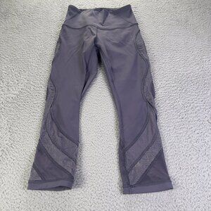 Lululemon Wunder Under Leggings Womens 4 Purple Mesh High Rise Crop Athletic
