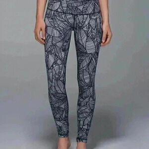 Lululemon Wunder Under Pant *Full-On Luon Banana Leaf White Black Women’s Size 6