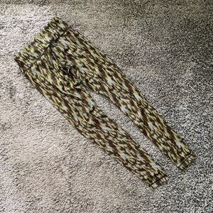 Classic tight made from full-on luxtreme fabric, a sweat-wicking and breathable fabric that stays cool. Feels very smooth and great next to the skin even in warm weather workouts. There is a small waistband pocket. The color is called Lusche Telemark Almost Pear Inkwell. Gently worn and still in great condition, inner label is attached. Marked size 4 and fits like XS in my opinion.