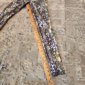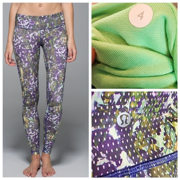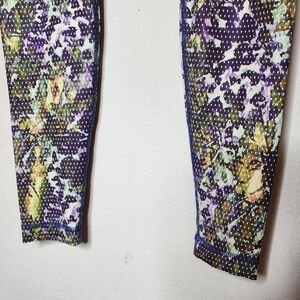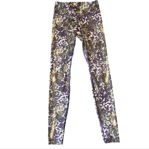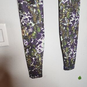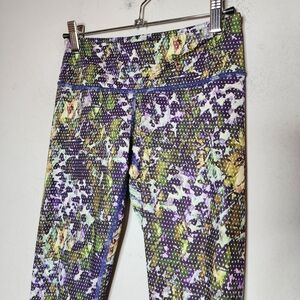 Lululemon leggings with mainly purple and green print
