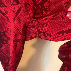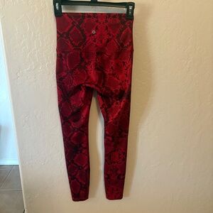 Lululemon Wunder Under Pant (Hi-Rise) *Full-On Luon Ziggy Snake Red Tide Cranberry. Sz 4, Excellent Pre-loved condition, like new condition. This high-rise take on our classic Wunder Under tights gives you the extra boost of coverage (and courage!) you need when you're stretching your limits. From headstands to high kicks, they've got your back. Rise: 30 1/2”. inseam: 7 3/4". RARE and Beautiful!