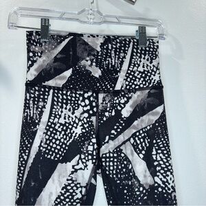 Stand out in style and performance with these eye-catching Lululemon high-rise leggings. Featuring a bold black and white abstract print, these full-length leggings are designed to support and sculpt during any workout or casual day out. Made with Lululemon’s signature fabric blend for stretch and comfort, they feature a wide waistband for added support and a flattering silhouette.