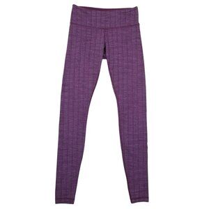 Lululemon Wunder Under Pant *Textured Ziggy Wee September Plum (woven zigzag pattern of purples and blues). Size tag removed/no size dot - size 4 based on measurements below - recommend comparing measurements against a well fitting pair. Cottony soft feeling luon fabric leggings with a medium rise. Features a wide waistband with waistband pocket, 4 way stretch, and sweat wicking.