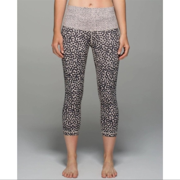 Lululemon Wunder Under Roll Down Ivory Black Dot Workout Crop Leggings Pants 4. Size tag removed. Otherwise excellent condition - no pilling or stains. Super soft material!! Cropped length