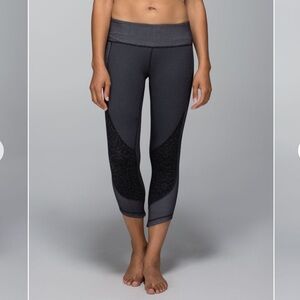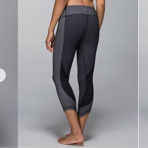 Lululemon Wunder Under Sashiko Black Grey Crop Leggings Womens Size 6