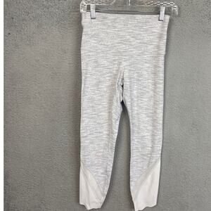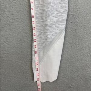 Lululemon Wunder Under Scalloped Hem High-Rise Crop 21" leggings in white/gray heather, size 6. Made with Full-On Luon fabric for support and comfort, featuring mesh detail, a fold-down waistband, and a stylish scalloped hem for a unique athletic look.