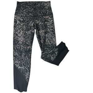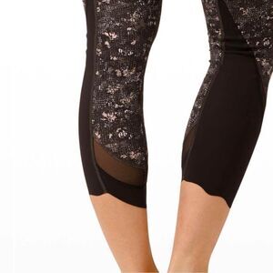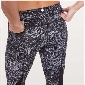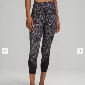 Lululemon Wunder Under Crop || *Roll Down Scallop 24". Black white abstract pattern.