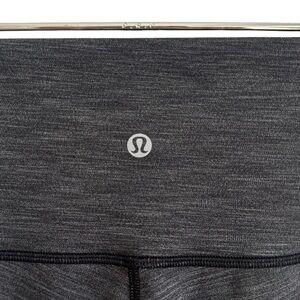Lululemon Wunder Under leggings in a heathered black (charcoal looking) color. In great preowned condition; no visible flaws. Pull tag is missing but size dot is pictured- size 6!
