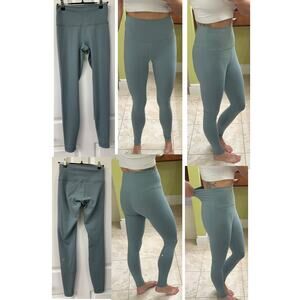 Lululemon Wunder Under Train high rise 28" crater blue size 6 draw string green, like new condition. Retail $98