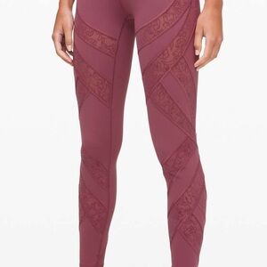 Lululemon Wunder Under high rise leggings, 28”, flocked with lace inserts, excellent condition