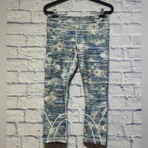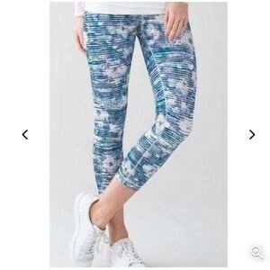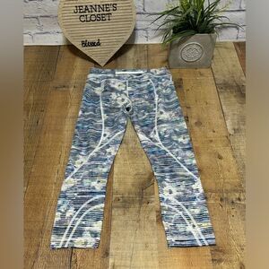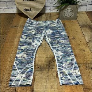 Lululemon Wunder Under Blurry Belle blue abstract print cropped leggings size 6