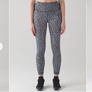 EUC Lululemon high waist rise leggings tights full on luxtreme daisy dust alpine white black print 4