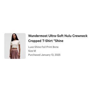 Lululemon Wundermost Soft Nulu Crewneck Cropped T-Shirt, Bone, *Shine, M, EUC
