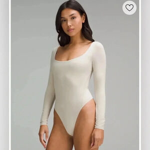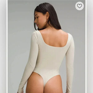 Lululemon Wundermost Ultra-Soft Nulu Square-Neck L/S Bodysuit Mojave tan Sz xl