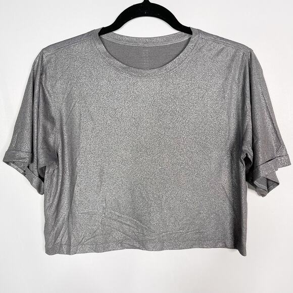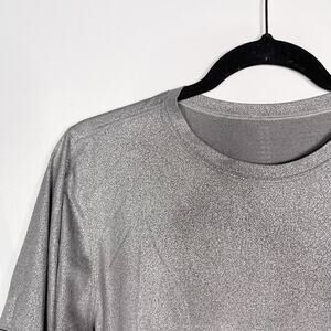 Lululemon X SoulCycle Womens 6 To The Beat Tee Luminosity Foil Print Grey Silver