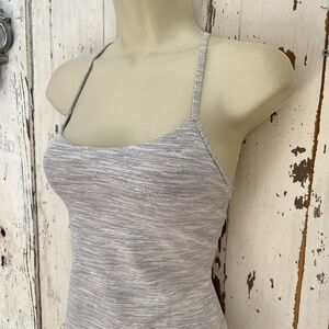 Lululemon Power Pose Y Woman's Gray White Built In Sports Bra Racerback Athletic Active Sports Workout Exercise Running Jogging Yoga Tennis Golf Casual Tank Top