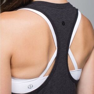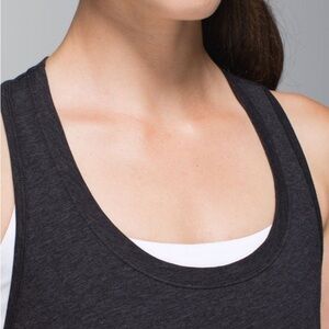 Lululemon Yogi Loose Fit Front Pocket Athletic Racer Tank / Heathered Black Sz 2