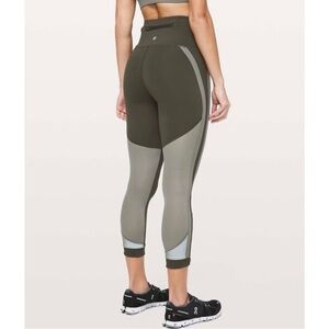 Lululemon Zip The Line Crop 23" Size 4 In Dark Olive/Grey Sage
