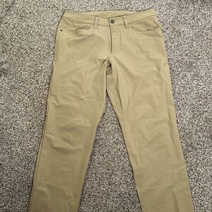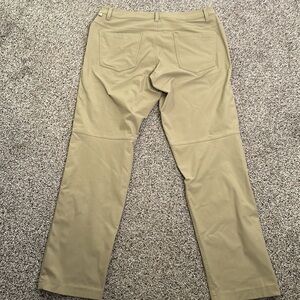 Lululemon classic pants size 31 great condition the waist is 17 inches the rise 13 inches the inseam is 29 inches has a small flaw please see last pictures