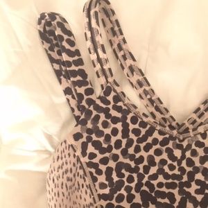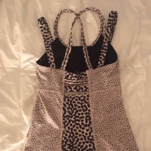 This tank top is super cute with a pattern throughout the top with a breathable open back. When I bought this it didn't have a tag size but when I measured it shows that it is a size xs/4. Being the xs/4 the bust measured at 25" and the hip measured 35".