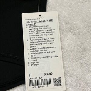 Brand new never worn black Lululemon align shorts 2” size 8