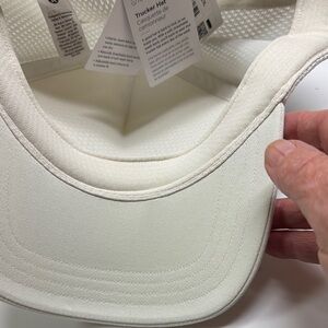 Stylish lululemon athletica trucker hat. Features a bone color with mesh detailing. Adjustable strap in back. Nylon feel logo. Unisex Perfect for casual wear.