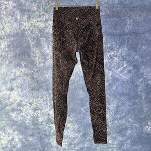 Lululemon athletica leggings likely an align legging no pockets no size dot black w/ pink graphic print approximately Sz 4