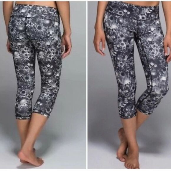 Lululemon athletica wunder under, crop flowabunga black angel wing size 8 women