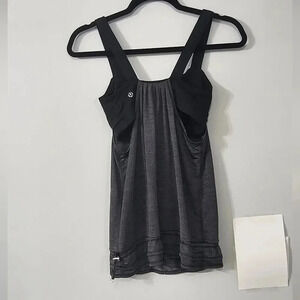 Lululemon back on track black gray built in bra drawcord bottom hem tank top
