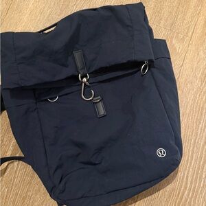 Navy blue lululemon backpack. Perfect for school, work, the gym. In great condition, the latch on the hook broke off, but the hook still locks on