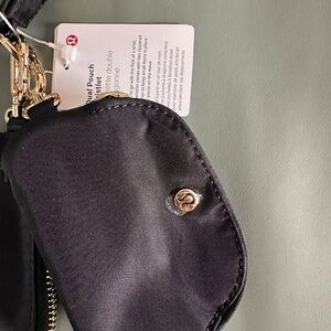 Lululemon black and gold wristlet dual pouch, one size.