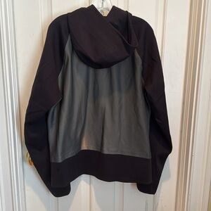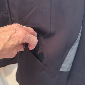 Has pockets. 55% Elastane 45% Nylon. Has stretch to the material. Very nice.