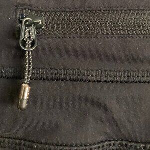 Lululemon black carpi workout pants - zipper pocket on the back. Mesh like at the bottom of the pants - includes free bag