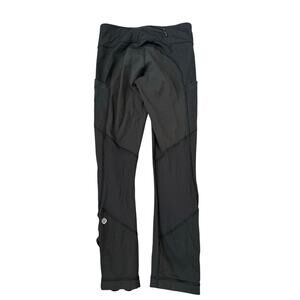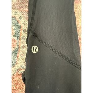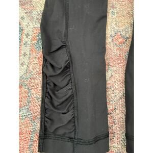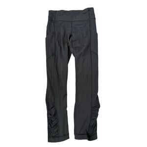 Lululemon size 4 black leggings. 24” inseam and ruching at the calf area. Great condition. Back pocket