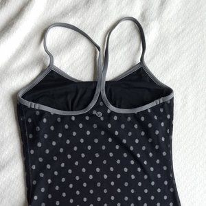 This is a very good condition, gently used black with silver polka dots Warrior Tank from Lululemon. Size 6, but it runs small (it's fairly tight on me and I wear XS-S in most other brands). It's also pretty long - that's the reason I'm selling it. This is a great piece! Comes from a house with cats. Offers welcome!