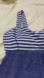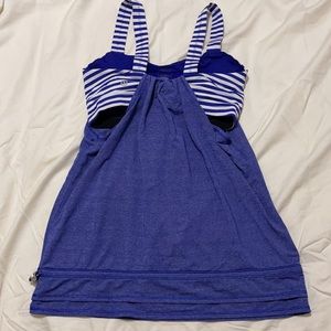 Blue and white athletic top perfect for running, yoga, or your workout of choice. The blue fabric under the bust has a slight shimmer, which is difficult to capture in a photo/video. Comes with removable pads.