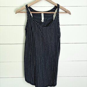 Lululemon dark blue and white pinstriped tank. This has the cutest criss cross in the back. Perfect tank for workouts or to wear out with a pair of jeans. Lululemon logo on the upper back. Size 6