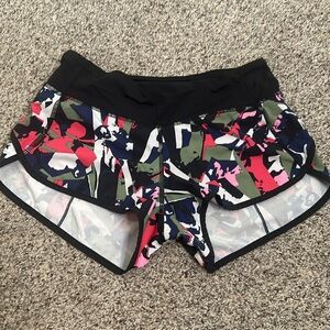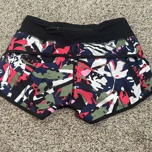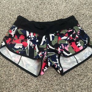 Lululemon printed shorts size 2 black blue white pink green red great condition the inseam 3 inches