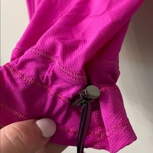 Lululemon bright pink work out top size 6. Good condition.Has drawstring at the bottom.Length is 25.5” and chest is 14”No material tag